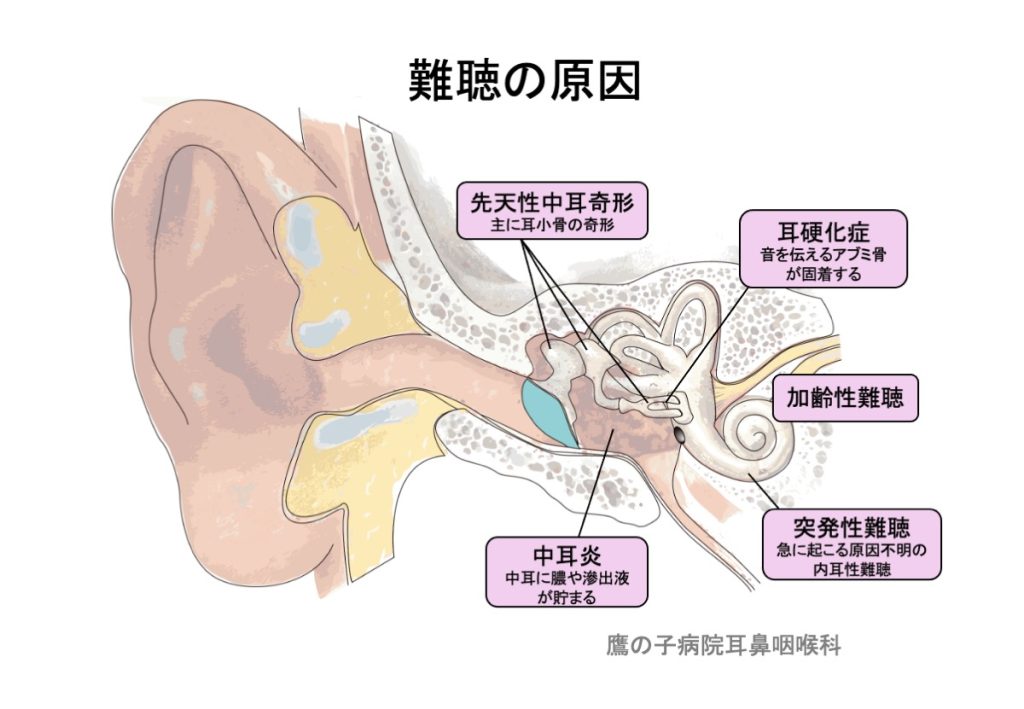 特に両側性の場合、言語発達に影響するため、早期発見・早期介入が大切です。