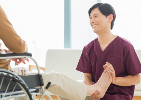 医療スタッフがご自宅まで訪問し、必要な医療処置や健康管理を行い、患者様が快適な生活を送るためのサポートを致します。