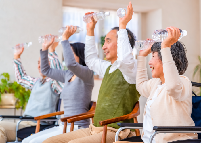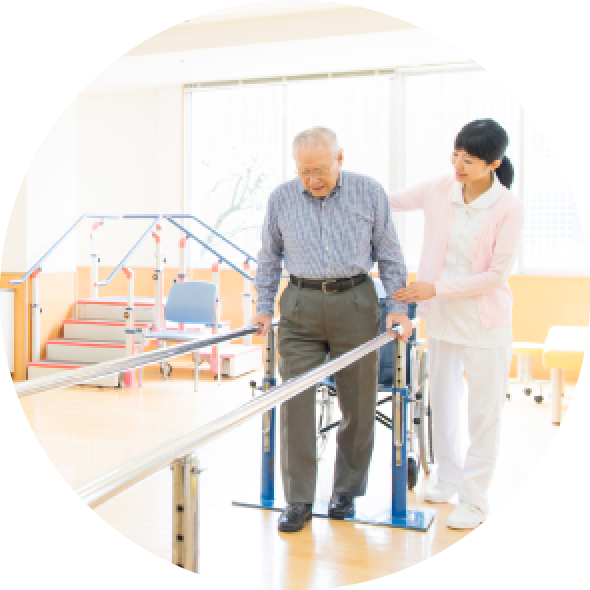在宅復帰に向けて、利⽤者様一人一人に合った、リハビリ専門職によるリハビリテーションを提供し、自宅訪問や栄養・介護指導なども行っています。