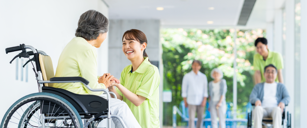 過ごしやすい療養環境を目指し、利⽤者様とご家族様とのコミュニケーションを大切にしながら、医師、看護師・介護職員、リハビリ職員、管理栄養士、支援相談員、介護支援専門員など、様々な職種が協力して利用者様のケアを行います。